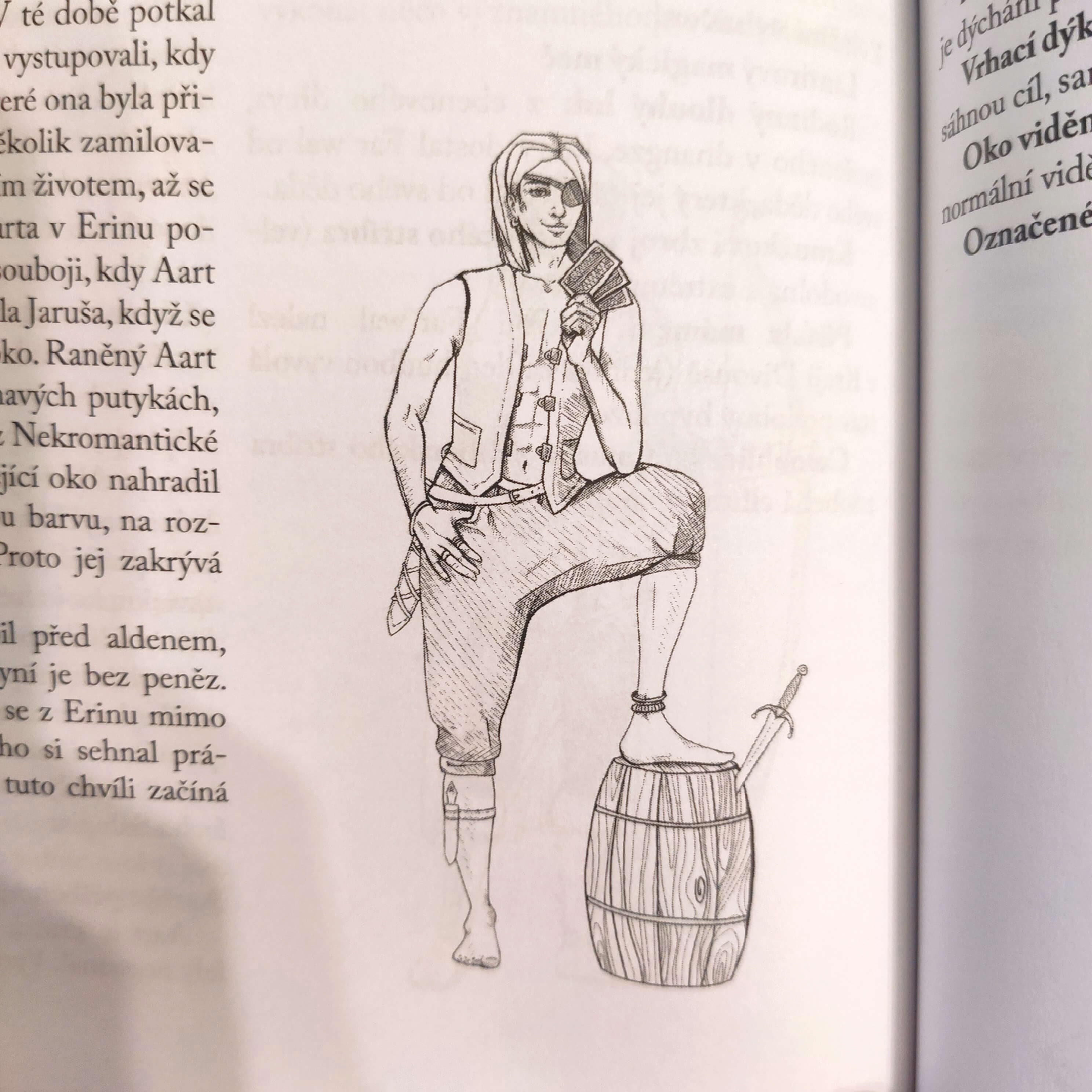 Vytvořila jsem dvě různá záhlaví zobrazující mír a válku, která byla použita jak v modulu Sarindarské výsostné vody, tak v připojeném dobrodružství Dračí gambit. Dále jsem vytvořila ilustrace postav (dle kterých byly poté vytvořeny 3D modely a vytištěné figurky), mapy a další drobné kresby.