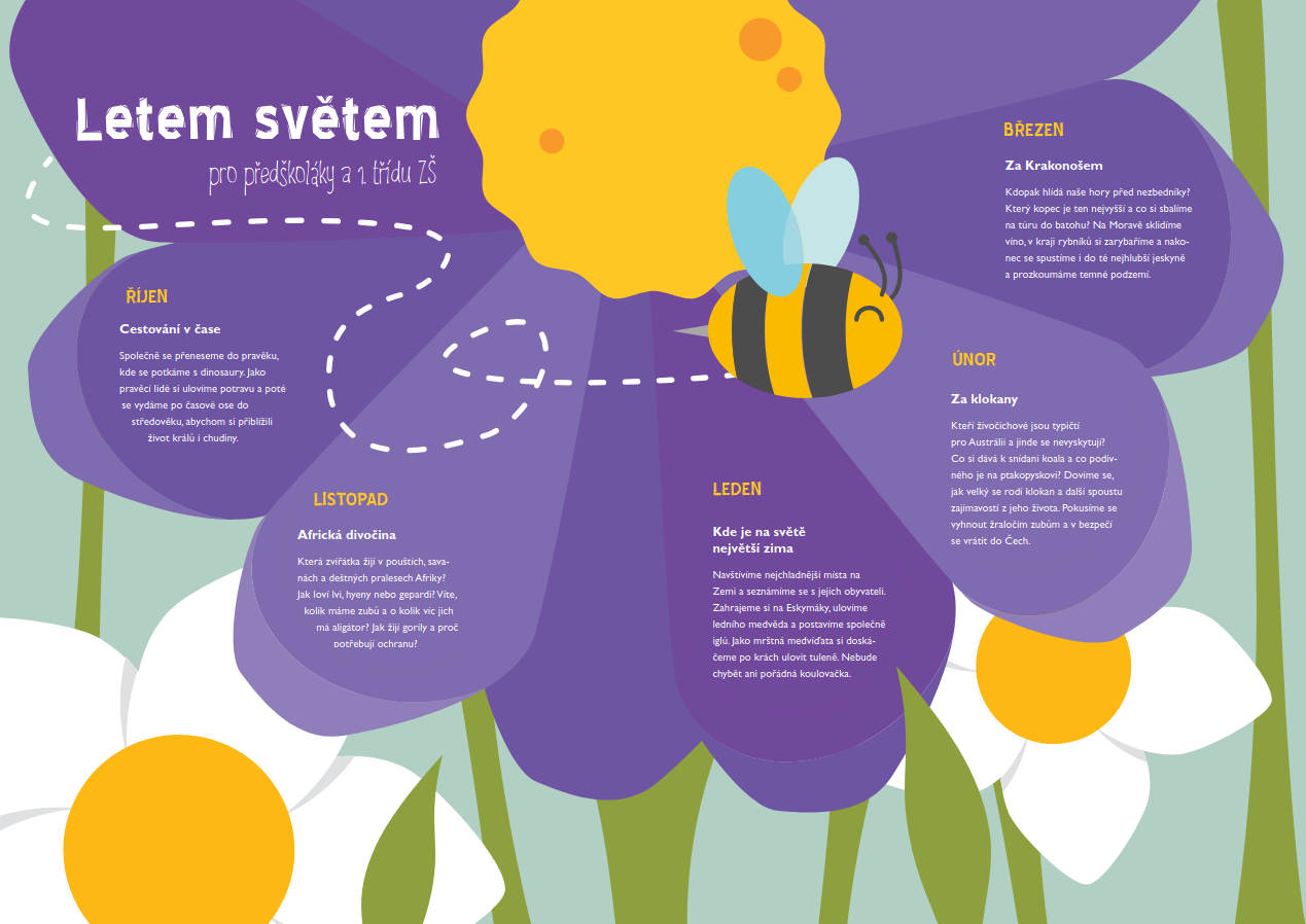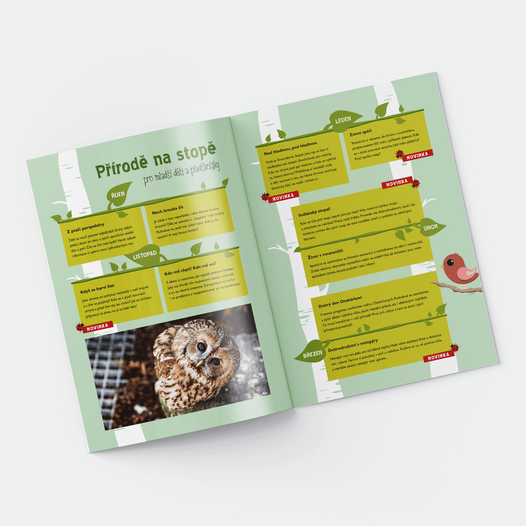 V letech 2018–2020 jsem pracovala na celkem třech katalozích pro neziskovou organizaci představujících jejich výukové programy pro mateřské, základní a střední školy.